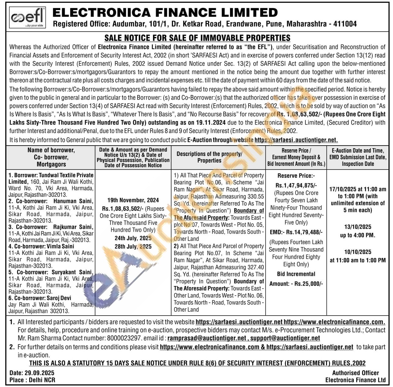 1) All That Piece And Parcel of Property Bearing Plot No.06, in Scheme "Jai Ram Nagar", At Sikar Road, Harmada, Jaipur, Rajasthan Admeasuring 330.55 Sq. Yd. (hereinafter Referred To As The "Property In Question") Boundary of The Aforesaid Property: Towards East -plot No.07, Towards West - Plot No. 05, Towards North - Road, Towards South Other Land