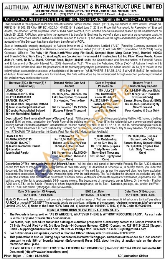 "All that piece and parcel of Immovable Property Flat No. A/304, situated on the third floor of Wing-A of the building known as "Nilkanth Valley, as described in Schedule 'A', is hereby sold to you under this document. The internal measurements, carpet area, and layout of the said flat are as per the approved plan. You have exclusive, independent possession, enjoyment, and ownership rights over the said property. The flat includes the structure but excludes any right to alter the structural elements such as outer walls, windows, doors, ventilators, or to create cavities for showcases, cupboards, etc. The built-up area of the flat is approximately 54.64 square meters. The boundaries of the property are as follows. On the North Fiat No. A/301 and O.T.S.; on the South-Property of others beyond the margin area; on the East-Staircase, passage, etc.; and on the West-Flat No. B/303 and others." (Mortgage Deed Not Available)