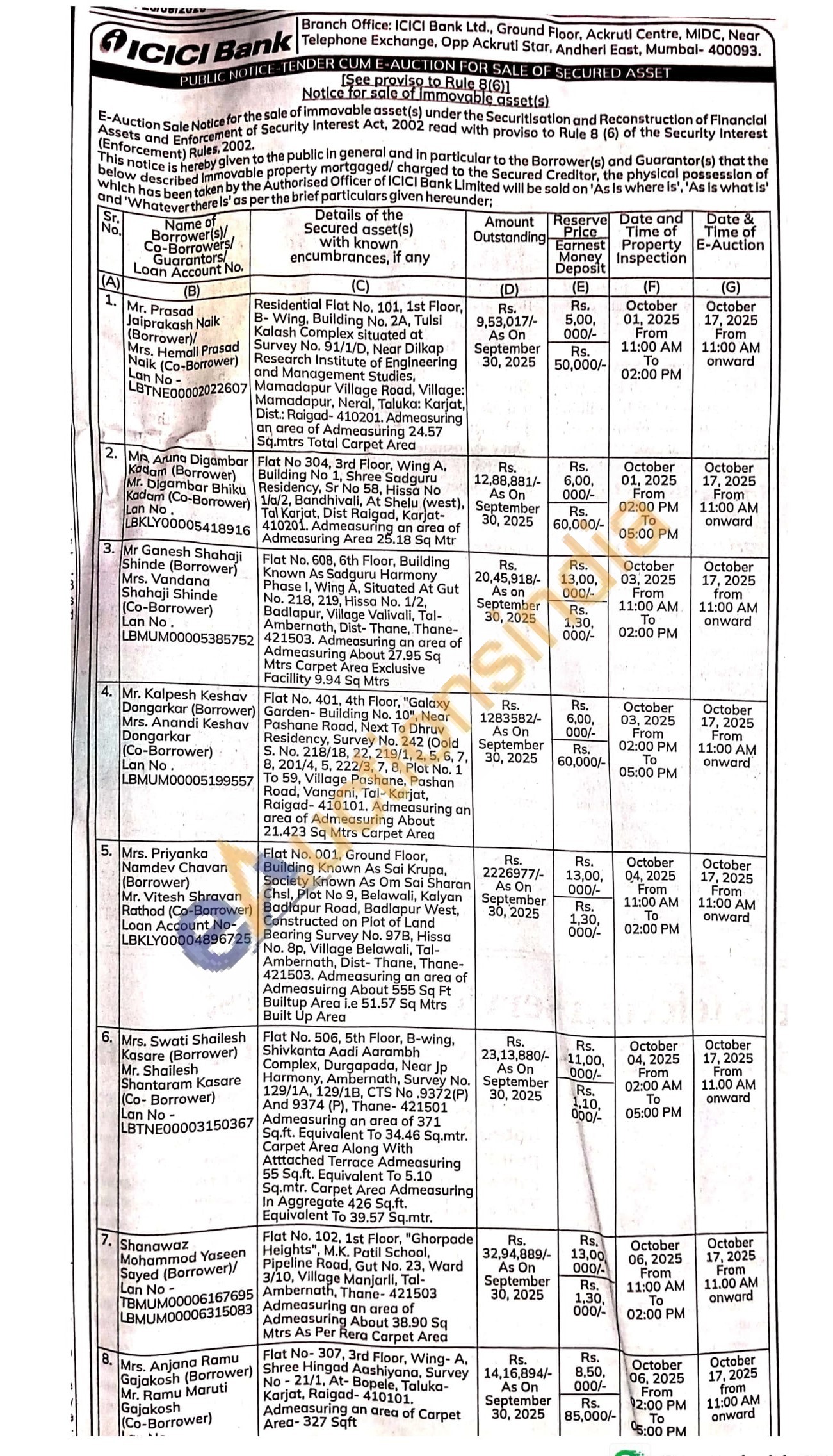 Residential Flat No. 101, 1st Floor, B- Wing, Building No. 2A, Tulsi Kalash Complex situated at Survey No. 91/1/D, Near Dilkap Research Institute of Engineering and Management Studies, Mamadapur Village Road, Village: Mamadapur, Neral, Taluka: Karjat, Dist.: Raigad-410201. Admeasuring an area of Admeasuring 24.57 Sq.mtrs Total Carpet Area