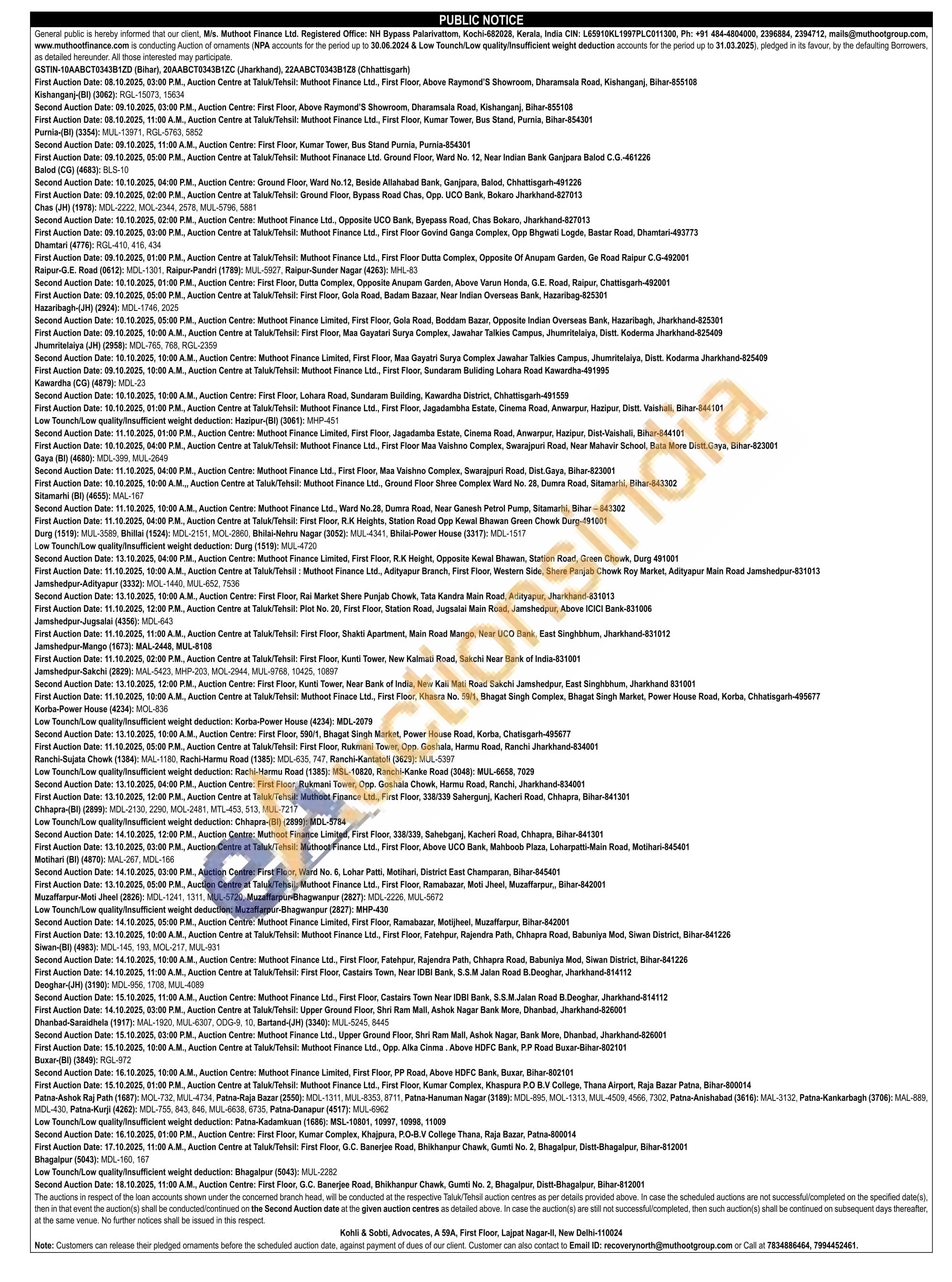 Muthoot Finance Ltd Gold Auctions Auction in Durg