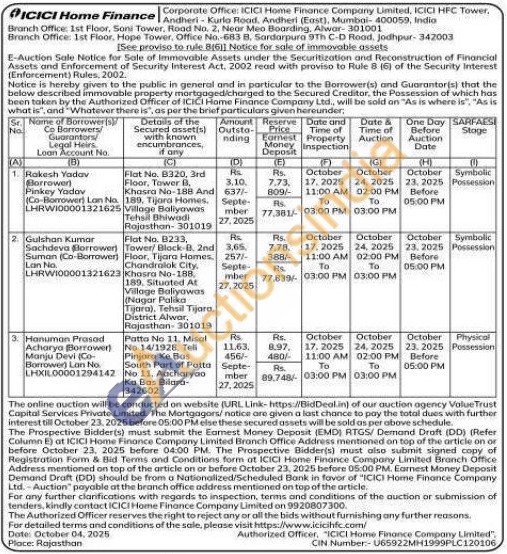 Flat No. 8233, Tower/Black-B. 2nd Floor, Tijara Homes Chandralok City. Khosra No-188 189, Situated At Village Baliyawas (Nagar Palika Tijara), Tehsil Tijara District Alwar. Rajasthan-301019