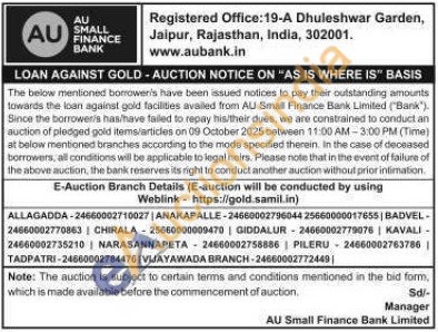 AU Small Finance Bank Gold Auctions Auction in Anakapalli