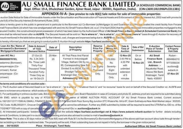 All That Piece And Parcel Formed in Ankondapalli Village, Natham Old Sy.no-85. Corresponding New Sub Divided S. no 85/35, Ext.59, Shoolgiri Taluka And Krishangiri Dist, Tamil Nadu Admeasuring 635.sq.ft