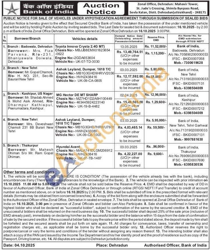 Branch: New Tehri Tehri Garhwal Mobile No : 9997881630