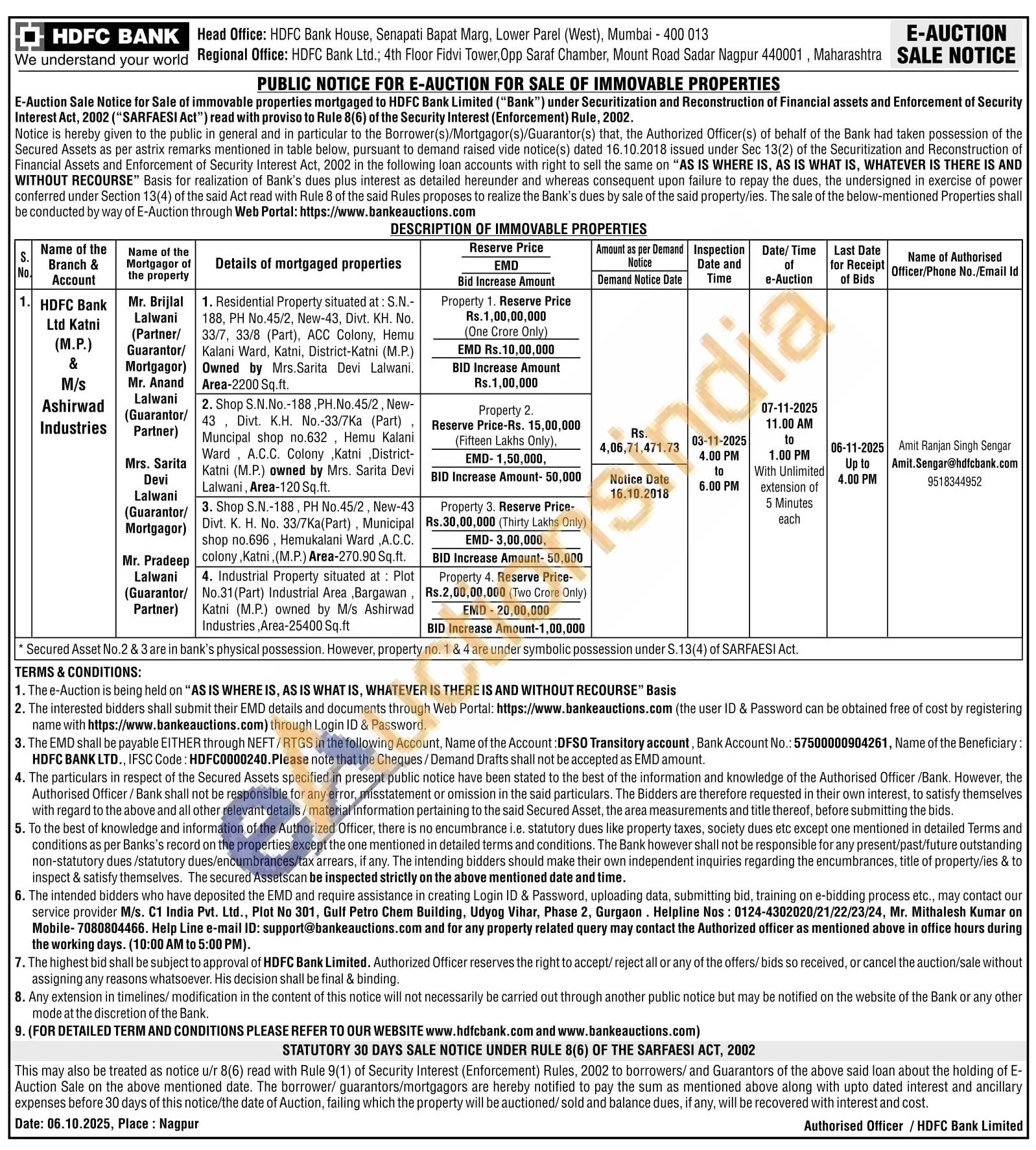 4. Industrial Property situated at: Plot No.31(Part) Industrial Area, Bargawan, Katni (M.P.) owned by M/s Ashirwad Industries, Area-25400 Sq.ft