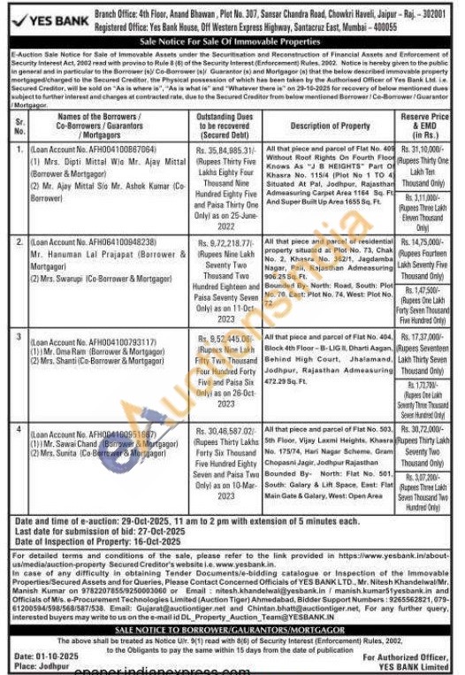 All that piece and parcel of residential property situated at Plot No. 73, Chak No. 2. Khasra No. 362/1, Jagdamba Nagar, Pali, Rajasthan Admeasuring 906.25 Sq. Ft. Bounded By- North: Road, South: Plot No. 70, East: Plot No. 74, West: Plot No. 72