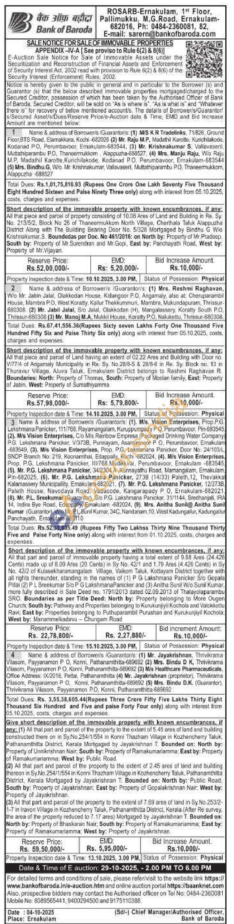 All that part and parcel of immovable property having a tolal extent of 9.58 Ares (24.426 Cents made up of 8.00 Ares (20 Cants in Sy No 421 and 1.79 Ares 14 426 Cent in y No. 422 of Kulasekharamangalan Village, Vakom Taluk Kottayam District together with all rights thereunder, standing in the names of (1) PG Lakshmana Panicker Sre Gepata Pillai (2) PLSreekumar 50PG LakshmanaPanicker and (3) Anitha Sunil Sunil Wo Wo Sunil Kumar more fully described in Sale Deed no. 1701/2013 dated 02.09.2013 of Thalayolaparambu SRO Boundaries as per Title Deed: North by. Property belonging in More Ougen Church: South by: Pathway and Properties belonging to Kunukunjiyil Kochola and Valckkath Ravi, East by: Properties belonging to Puthuparambil Purushan and Kurukuniy Kochota West by: Manammakadav-Changam Road