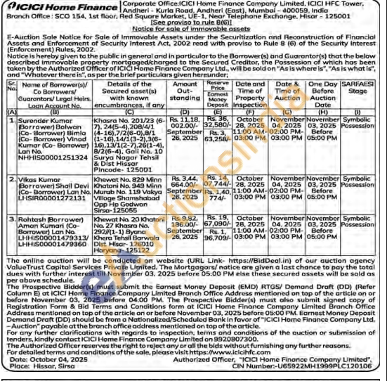 Khasra No. 201/23 (6-(7), 24(5-4),208/4/1 (4-16),7/2(6-0),8/1 (1-16),14/1(3-2),3(6-16),13/1(2-7),26(1-4), 8/2(6-4), Gali No. 10 Sur Surya Nagar Tehsil & Dist Hissar Pincode- 125001