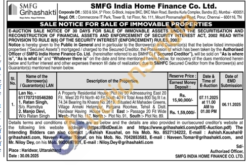 A Property Residential House, Plot No 90 Admeasuring East 20 Fit, West 20 Fit North 40 Fit South 40 Fit Total Area 800 Sq.fit l.e. 74.34 Bearing Its Khasra No. 2619, Situated At Mahadev Greens, Village Anneki Hetampur, Pargana Roorkee. Tehsil & Distt. Haridwar Having House Over Il East: Passage 20 Fit Wide West:- Plot No. 117, North: Plot No. 91. South: Plot No. 89.