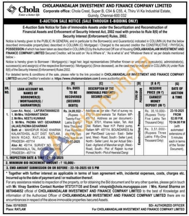 Address as per site:- Part of survey no. 870/1/- kharwakala Tal Ratlam MP. 457114. Address as per document P.S.N. 870/1, Kharwa kalan, Teh. Alot Dist. Ratam, Near H.P. Petrol pump, Ratlam MP-457114. BOUNDARIES AS per Plan/Deed Lay-out-East Seller land, West-Road, South- Seller Land, North-Seller Land. As per Actual Site: East-Agriland of Manohar singh, West-Road, South Plot of Rajesh ku-mar Porwal North-Plot of Heeralal Dangi