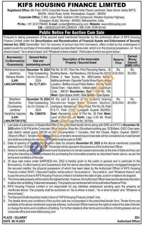 Flat No. 8-107, Floor No.-First Floor,wing Name. - В. Building Name. - Sai Residency, Old Survey No.307/3/Paikee 2, New Survey No. 895/2, street Name.-Balitha landmark-Opposite Toyota Show Room village Location-Balitha, mouza Police Station-Na, city Tehsil Taluka Town Vapi, district. Valsad state. Gujarat,pin Code 396191 Boundaries: East: Flat No. 106, West:-Open Space, North-Stair, South:-Open Space