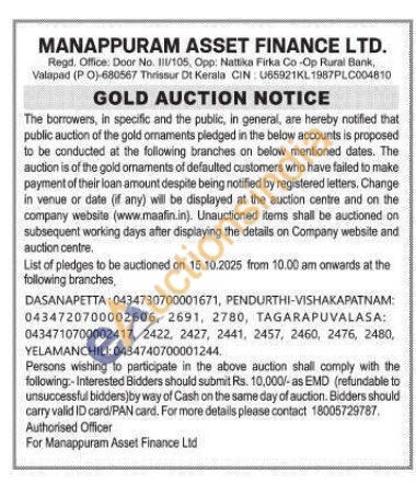 Manappuram Asset Finance Ltd Gold Auctions Auction in Thrissur