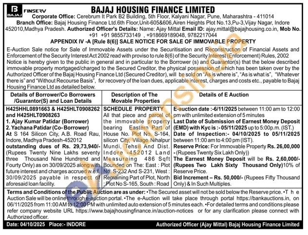 All that piece and parcel of the immovable property bearing Eastern Part of House No. Plot No. S-164, silicon City, Village Nihalpur between Mundi, Tehsil And Dist. Indore -452012 Land Measuraing 486 Sqft Bounded on The: East: Plot No. S-232 And S-231, West: Remaining Part of Plot, North Plot No S-165, South: Road
