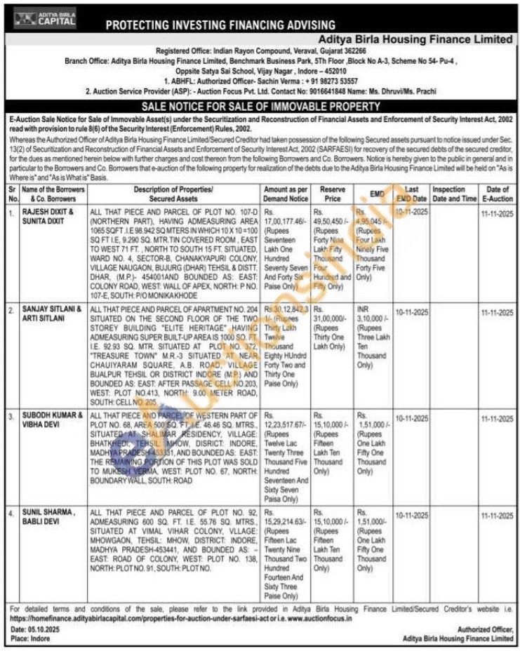 ALL THAT PIECE AND PARCEL OF WESTERN PART OF RS PLOT NO. 68, AREA 500 SQ. FT. IE. 46.46 SQ. MTRS, SITUATED AT SHALIMAR RESIDENCY, VILLAGE: BHATKHEDI, TEHSIL: MHOW, DISRICT INDORE, MADHYA PRADESH-453331, AND BOUNDED AS: EAST: THE REMAINING PORTION OF THIS PLOT WAS SOLD TO MUKESH VERMA, WEST PLOT NO. 67, NORTH: BOUNDARY WALL, SOUTH ROAD