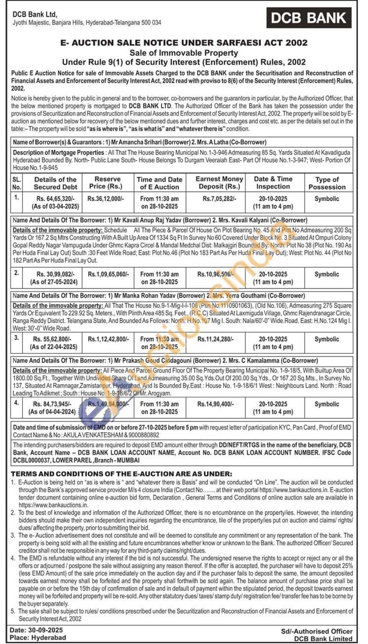 1) All That The House Bearing Municipal No. 1-3-946 Admeasuring 85 Sq. Yards Situated At Kavadiguda Hyderabad Bounded By. North-Public Lane South-House Belongs To Durgam Veeraiah East-Part Of House No. 1-3-947, West-Portion Of House No. 1-9-945