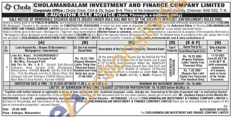 All the piece and parcel of land Gat No.345/5/A/Pai Plot No. 59 area 95.70 Sq.Mtrs out of that family unit B area 47.70 Sq.Mtrs Grampanchayat Milkat No. 6689/5/9/1 R.C.C construction building Ground floor 354 Sq.Ft and First floor 354 Sq. Ft situated at Uchgaon Tal-Karveer Dist- Kolhapur. Which is bounded as under East- Road West-Plot No. 58 South Unit No. A, North Property Of Mr. Yadav