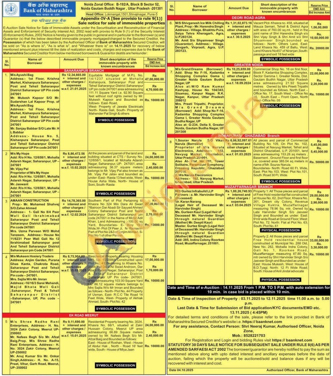 Property 2: All those pieces and parcel Free Hold residential house constructed at Municipal No. 288 Old, New No. 282. Mohalla Indra Colony. Gali No. 1. Roorkee Road, Muzaffarnagar measuring 87.80 Sq. mtr owned by Shri Harvinder Singh Slo Jasveer Singh and Bounded as under: East: House Mukesh; West. House of B.D.Tyagi: North: 12 Ft Wide Road; South: House of Anil Jindal advocate
