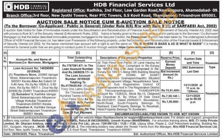 All That Piece And Parcel Of Land Having An Extent Of 0.46 Ares Comprised In Re-Survey No 185/6-2 And 0.80 Ares Comprised In Re-Survey No 185/7-1 Along With Building Bearing Door No BP 20/880, BP 20/881 (Balaramapuram Gramapanchayath) Situated In Balaramapuram Village, Neyyattinkara Taluk. Lying In Sub Registration District Of Balaramapuram And In The Registration District Of Thiruvananthapuram, THANDAPPER Account No. 13283(A), Block No.13, Obtained By Chandran K. By Virtue Of Sale Deed No.3337/2011. Dated 29/09/2011. Boundaries: North Road, South Property Belongs To Rasheed, East Property Belongs To Noushad.