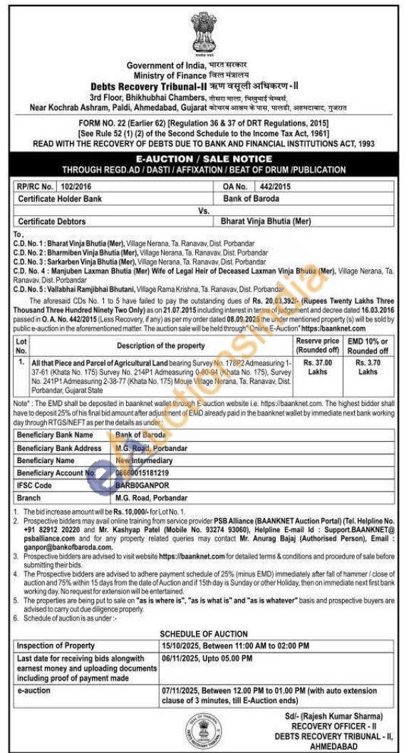 All that Piece and Parcel of Agricultural Land bearing Survey No. 178P2 Admeasuring 1-37-61 (Khata No. 175) Survey No. 214P1 Admeasuring 0-80-94 (Khata No. 175), Survey No. 241P1 Admeasuring 2-38-77 (Khata No. 175) Mouje Village Nerana, Ta. Ranavav, Dist. Porbandar, Gujarat State