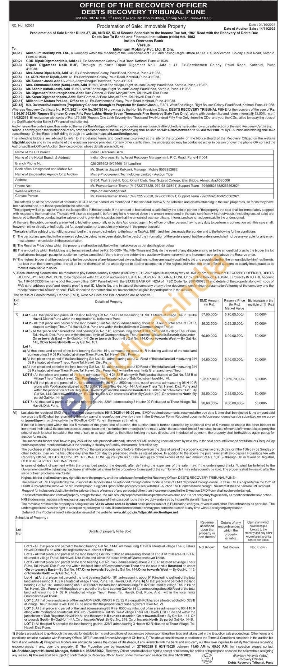 a) All that piece and parcel of the land bearing Gat No. 161, admeasuring about 91 R including well out of the total land admeasuring 3 H02 R situated at village Theur, Pune, Tal. Haveli, Dist. Pune.