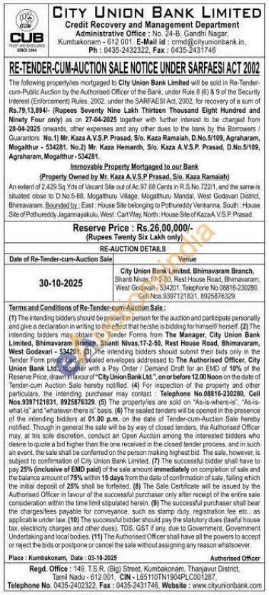 An extent of 2,429 Sq. Yds of Vacant Site out of Ac 97.68 Cents in R.S.No. 722/1, and the same is situated close to D.No.5-88, Mogalthuru Village, Mogalthuru Mandal, West Godavari District, Bhimavaram Bounded by, East: House Site belonging to Pothureddy Venkanna, South: House Site of Pothureddy Jagannayakulu, West: Cart Way North: House Site of Kaza A.V.S.P. Prasad