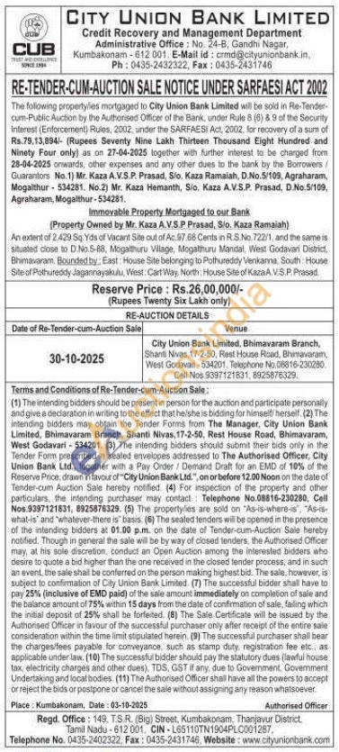 An extent of 2.429 Sq. Yds of Vacant Site out of Ac.97.88 Cents in R.S.No. 722/1, and the same is situated close to D.No.5-88, Mogalthuru Vilage, Mogalthuru Mandal, West Godavari District Bhimavaram, Bounded by, East House Site belonging to Pothureddy Venkanna, South: House Site of Pothureddy Jagannayakulu, West: Cart Way. North: House Site of KazaA.VSP Prasad