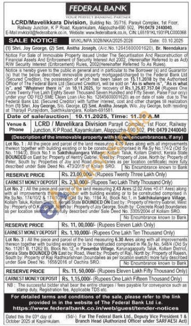 Lot No. 1: All the piece and parcel of the land measuring 4.70 Ares along wish all improvements thereon together with building existing or to be constructed comprised in Re.Sy No. 174/2 (Old Sy No. 1194/3), Block No. 1 in Sakthikulangara Village, Kollam Taluk, Kollam District, Kerala State BOUNDED on East by: Property of Hentry Gabriel, West by: Property of Jose. North by: Property of Peter, South by: Properties of Joy and Road (boundaries as per location certificate) more fully described under Sale Deed No. 473/2015 of Kollam SRO