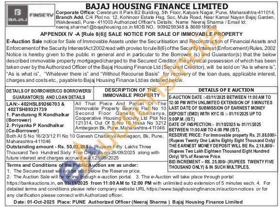 All That Piece And Parcel Of The Immovable Property Bearing Flat No. 10 Second Floor Ganesh Chaitanya, Cooperative Housing Society Ltd Plot No 121314, Out Of S No 16 Hissa No 3212 Ambegaon Bk, Pune, Maharashtra-411046