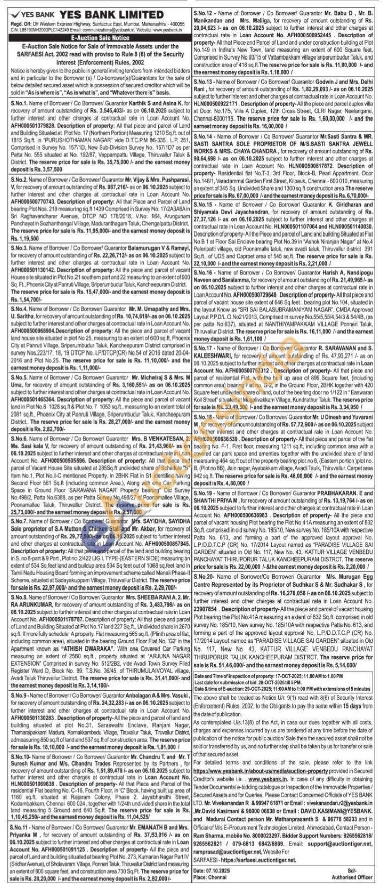 14) Residential flat No.T-3, 3rd Floor, Block-B, Pearl Appartment, Door No. 146/1, Varadammal Garden First Street, Kilpauk, Chennai-600 010, measuring an extent of 345 Sq. Undivided Share and 1300 sq.ft construction area