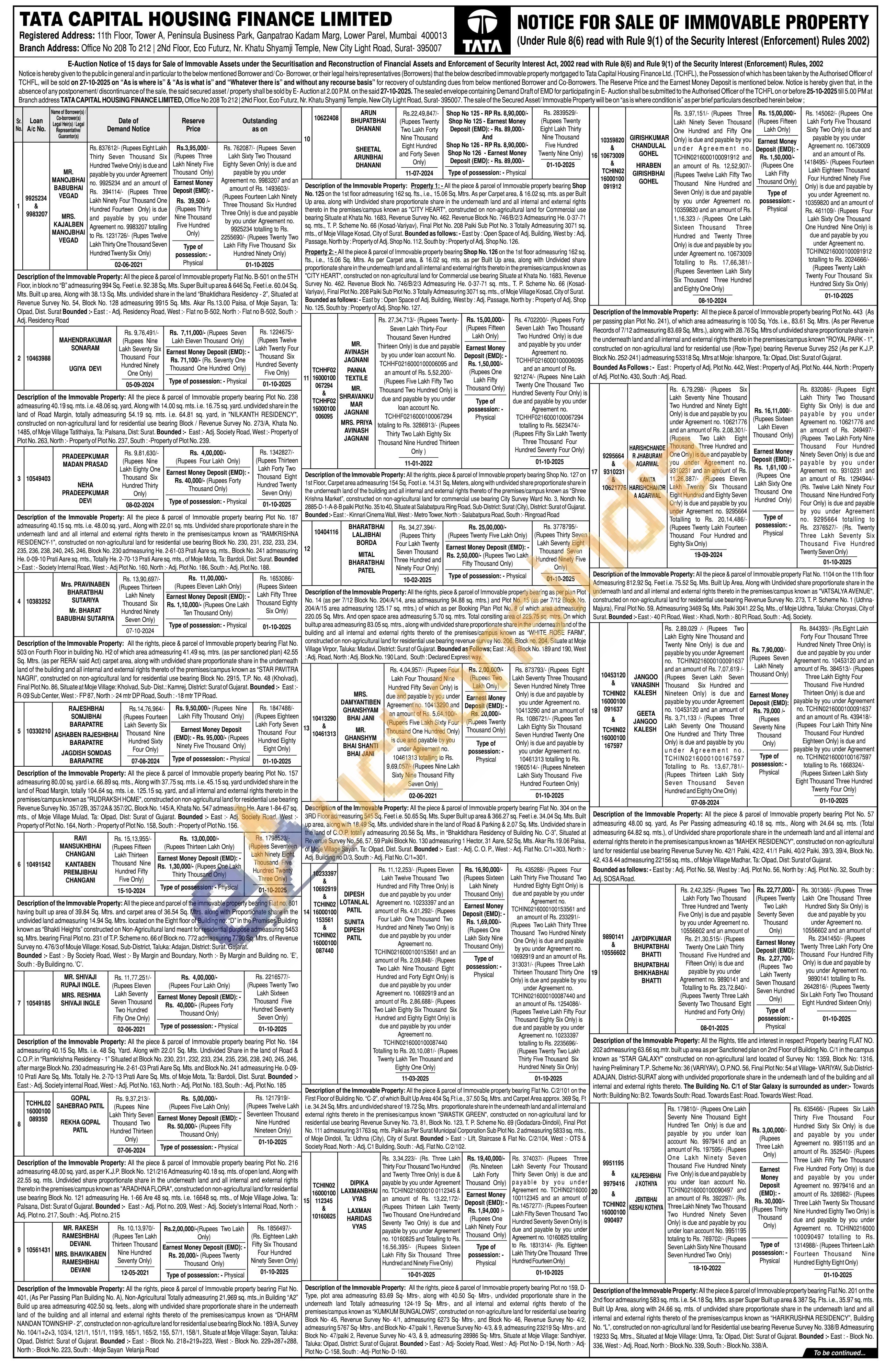All the piece & parcel of Immovable property Flat No. B-501 on the 5TH Floor, in block no "B" admeasuring 994 Sq. Feeti.e. 92.38 Sq. Mts. Super Built up area & 646 Sq. Feeti.e. 60.04 Sq. S Mts. Built up area, Along with 38.13 Sq. Mts. undivided share in the land "Bhaktidhara Residency - 2", Situated at Revenue Survey No. 54, Block No. 128 admeasuring 9915 Sq. Mts. Akar Rs. 13.00 Paisa, of Moje Sayan, Ta: Olpad, Dist. Surat Bounded:- East: - Adj. Residency Road, West :- Flat no B-502, North: Flat no B-502, South :-Adj. Residency Road