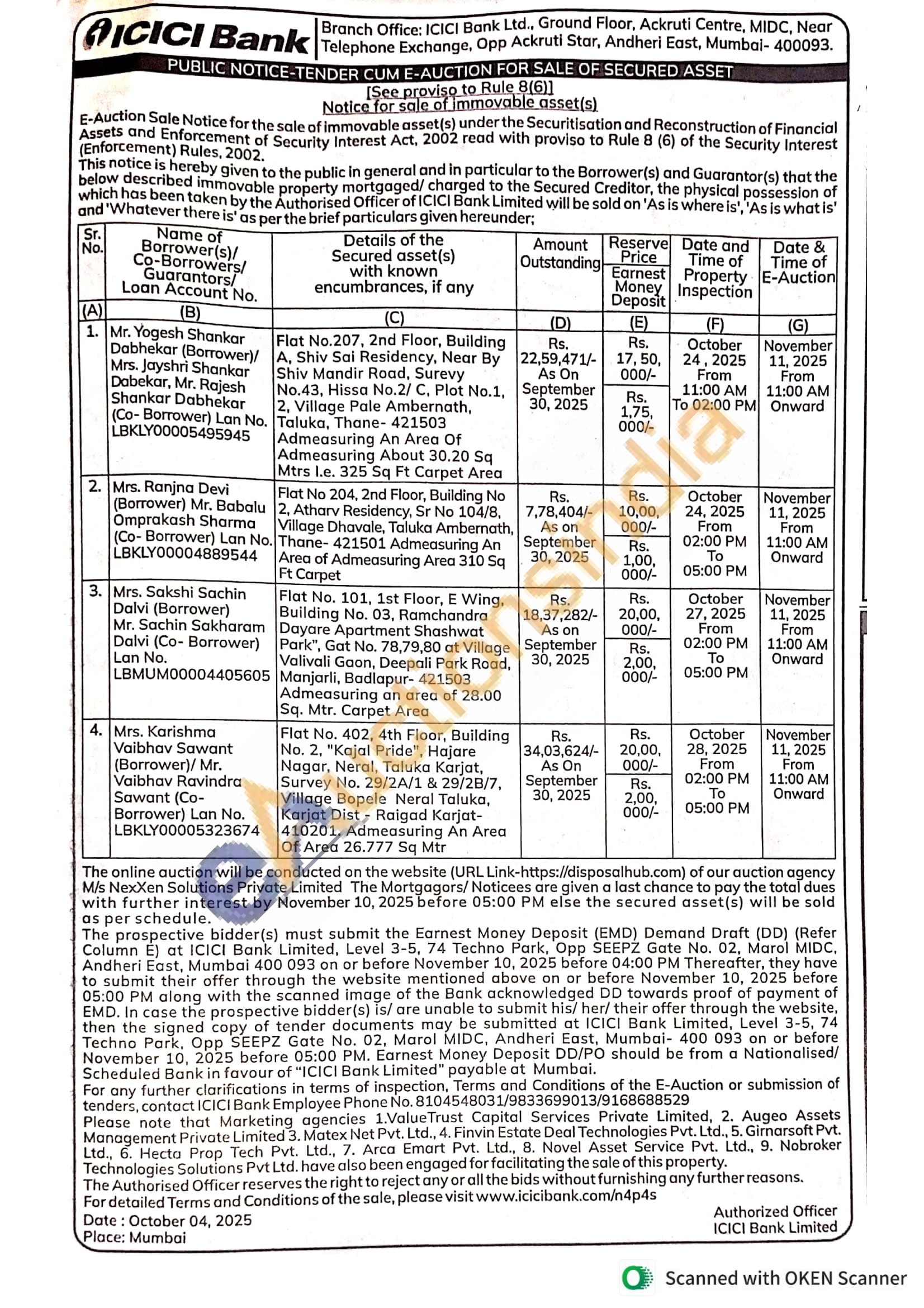 1) Flat No.207, 2nd Floor, Building A, Shiv Sai Residency, Near By Shiv Mandir Road, Surevy No.43, Hissa No.2/ C. Plot No.1, 2. Village Pale Ambernath, Taluka, Thane-421503 Admeasuring An Area Of Admeasuring About 30.20 Sq Mtrs l.e. 325 Sq Ft Carpet Area