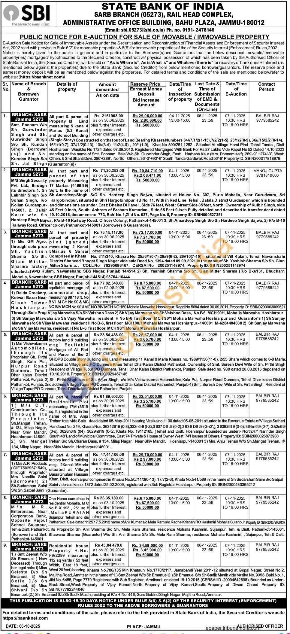 All part and parcel of equitable mortgage of commercial shop, measuring 9ft *18 ft, No BVI MCH No 90 & MC NO BIV MCH No 90 &MC NO BIV MCH NO 150 Mohala Marwaha Hoshiarpur. Regd No 5684 dated 30.09.2011. Property ID: SBIN0200063009521