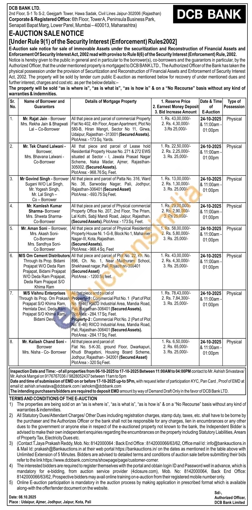 All that piece and parcel of Physical commercial Property Office No. 207, 2nd Floor, The Prism, Lal Kothi, Sabji Mandi Road, Jaipur, Rajasthan. (Secured Assets). Plot Area: - 173 Sq. Feet