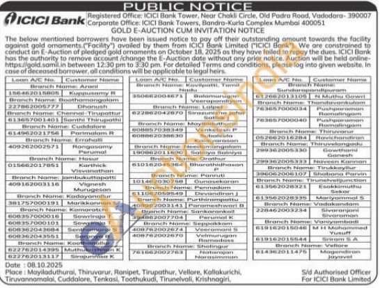 ICICI Bank Gold Auctions Auction in Tiruvannamalai