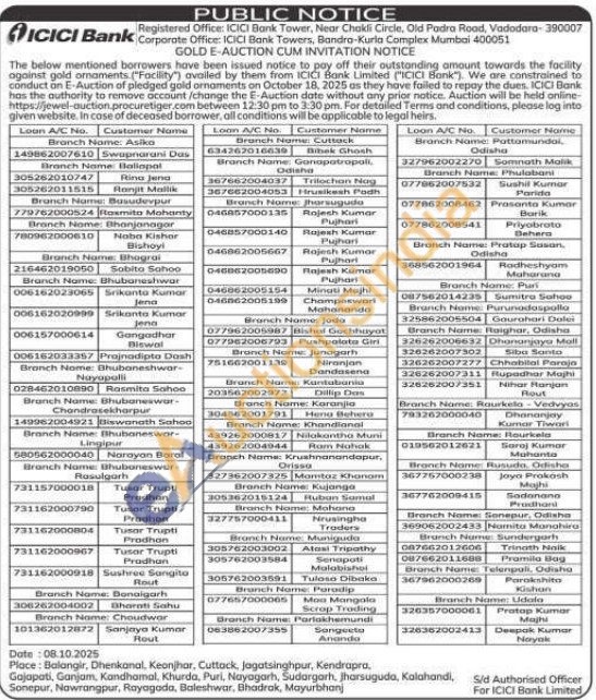 ICICI Bank Gold Auctions Auction in Ganjam