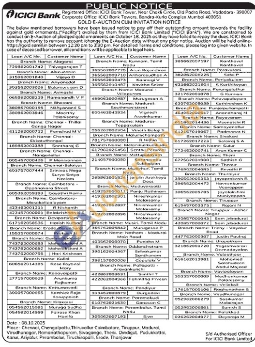 ICICI Bank Gold Auctions Auction in Tiruchirappalli