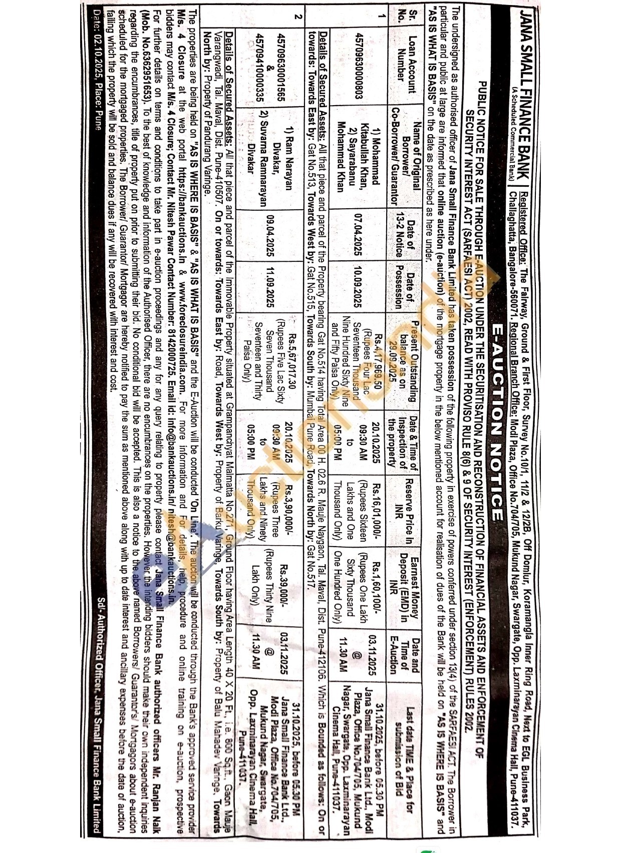 Details of Secured Assets: All that piece and parcel of the Immovable Property situated at Grampanchyat Malmatta No.271, Ground Floor having Area Length 40 X 20 Ft., i.e. 800 Sq.ft., Gaon Mauje Varangwadi, Tal. Maval, Dist. Pune-410507. On or towards: Towards East by: Road, Towards West by: Property of Barku Varinge, Towards South by: Property of Balu Mahadev Vannge, Towards North by: Property of Pandurang Varinge.