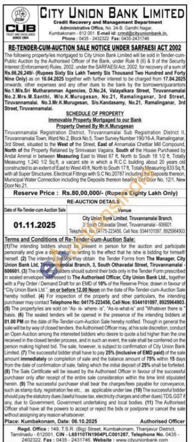 All that the piece and parcel of the Plot and any superstructure constructed to be constructed thereon in Virudhachalam Registration District, Ullundurpet Sub-District, situated at Sengurichi Mathura, Nainakuppam Village, in Ayan Punjai Survey No.567/36 at Northem side of Pillaiyarkovil Street and bounded to: North by Property belongs to Elumalai, South by: Street, East by: Plot belongs to Elumalai and West by: Property belongs to Subramaniyan, within the boundaries East to West 23% feet and South to North-55 feet Totally 1,306% sq.feel=121.5 sq.meter and at present Natham Survey No. 755/4-00113 sq. meter under Patta No. 1172.