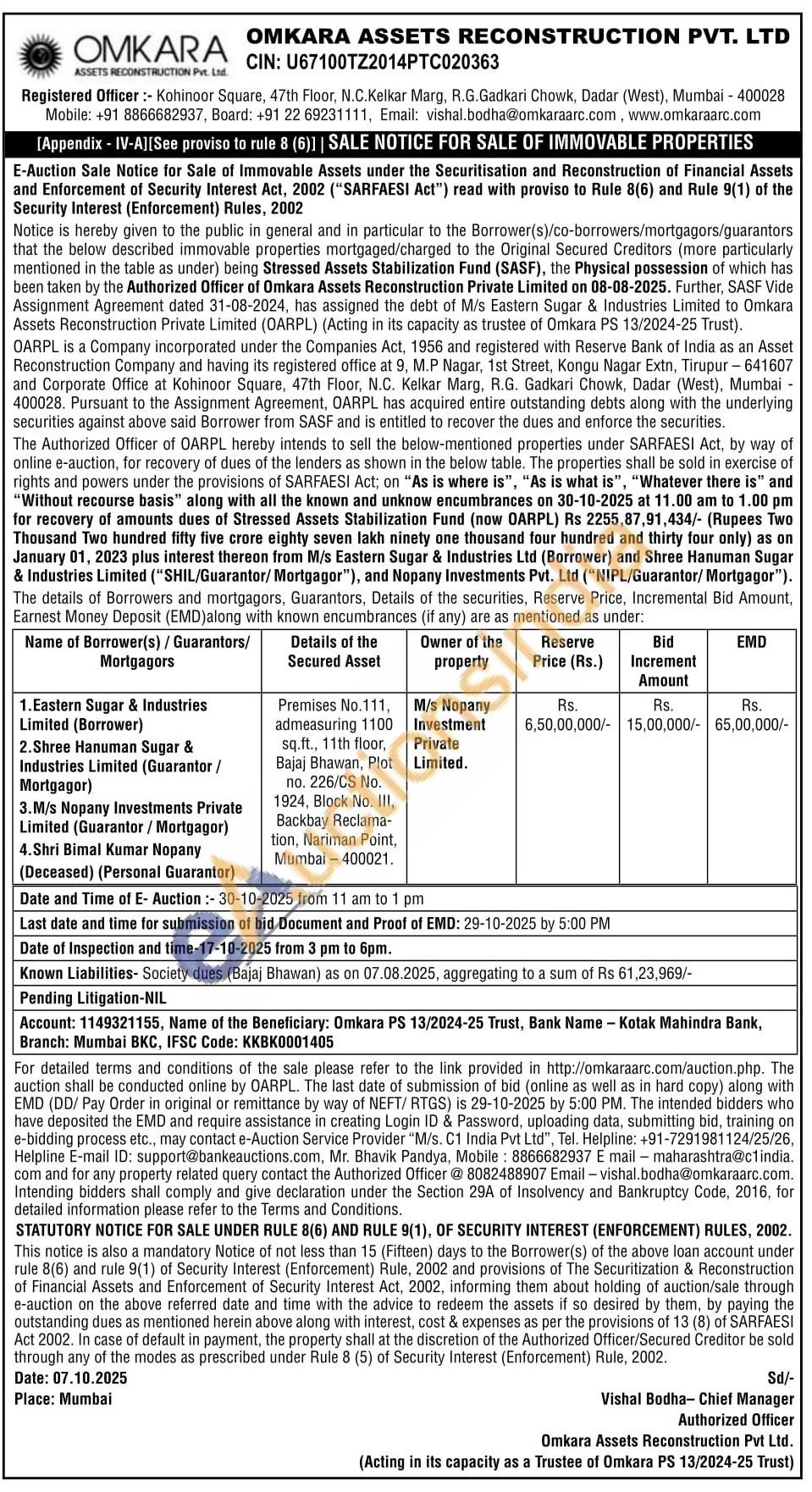 Premises No.111, admeasuring 1100 sq.ft., 11th floor, Bajaj Bhawan, Plot no. 226/CS No. 1924, Block No. III, Backbay Reclama-tion, Nariman Point, Mumbai-400021.