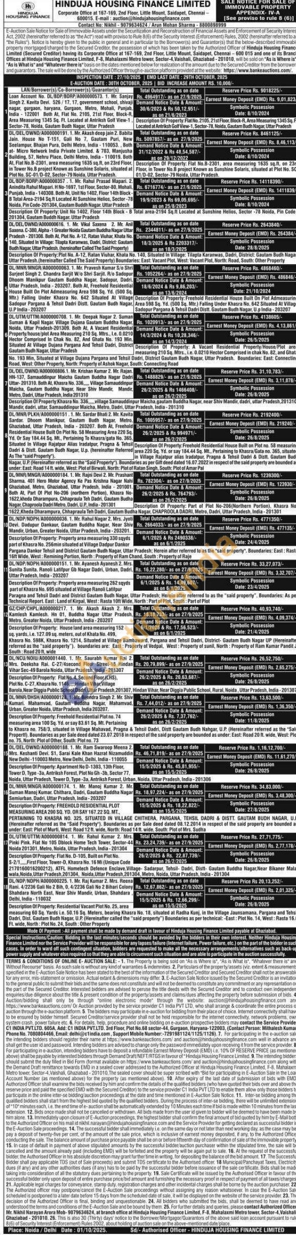 Plot No. A-12, Ratan Viuhar, Khata No. 140, Situated in Village: Tilapta Karanwas, Dadri, District: Gautam Budh Naga East: Vacant Plot, West: Vacant Plot, North: Road, South: Other Property Uttar Pradesh. (hereinafter Called The Said Property) Boundaries: