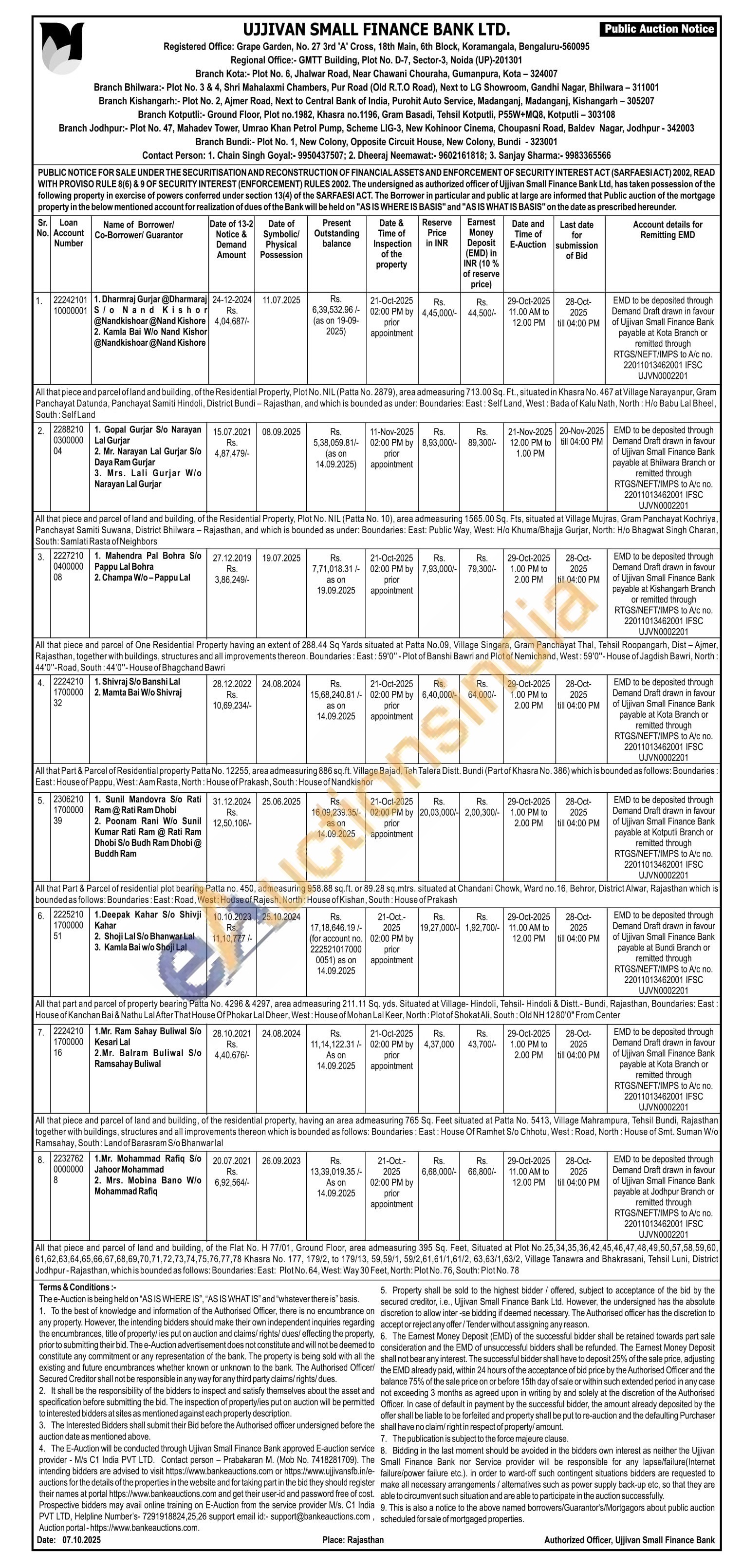 Contact Person: 1. Chain Singh Goyal:- 9950437507; 2. Dheeraj Neemawat:- 9602161818; 3. Sanjay Sharma:- 9983365566