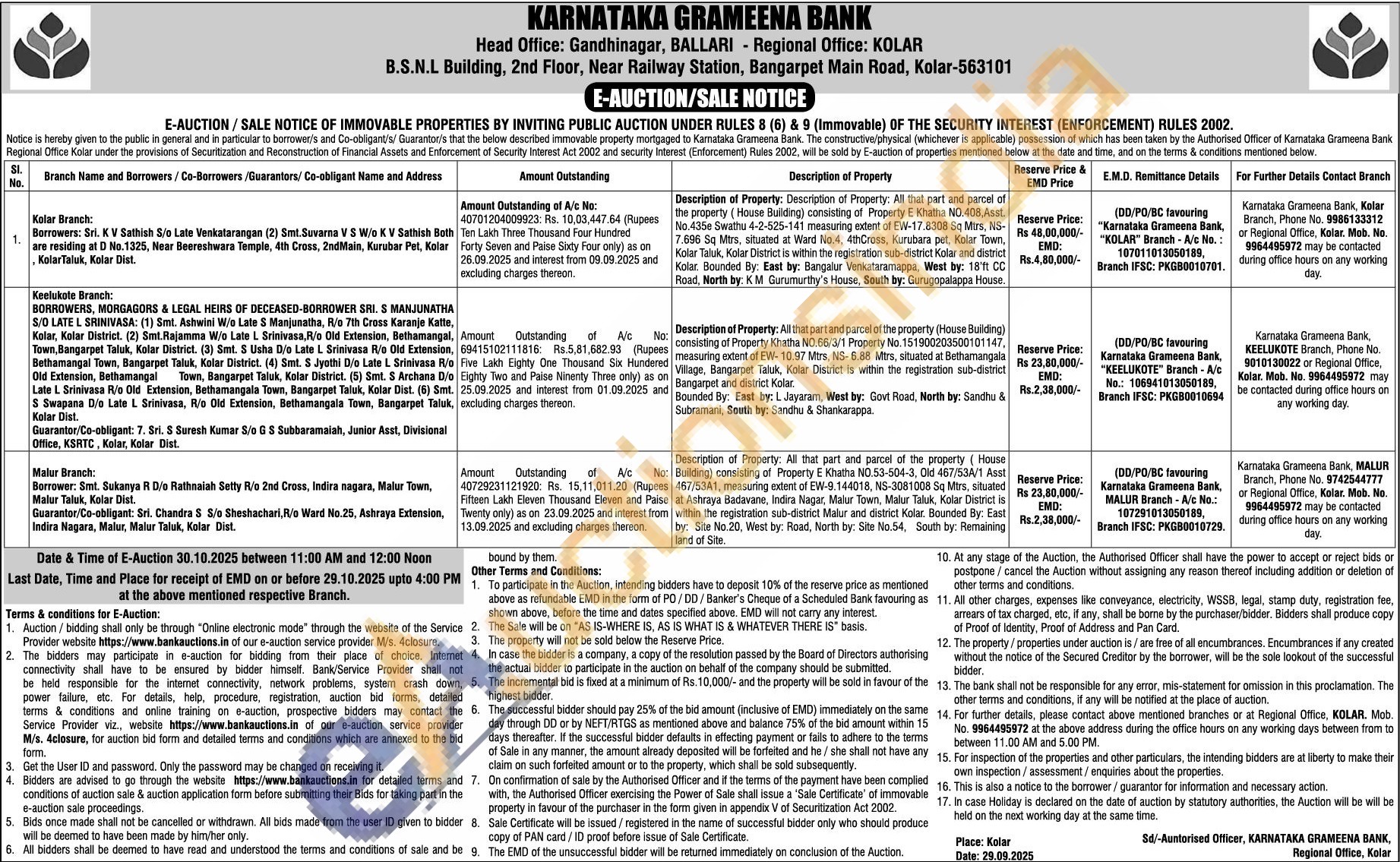 Contact KEELUKOTE Branch, Phone No. 9010130022 or Regional Office, Kolar. Mob. No. 9964495972