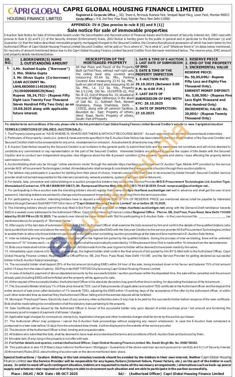 All that Piece and Parcel of the Property Built Up First Floor, without roof right upto the ceiling leved only, covered arco measuring 93.64 Sq. Mts., Parking Covered Area measuring 23.41. Sq. Mts, built-on plot of land area measuring 93.64 ie. 112 Sq. Yds, Proper Sq. Mts, ie 11 Sq. Yds, Property No.1/11146, Old No. 1619/PF/B-22, Plot Sa. Mts No. 8-22. Out of Khase No. 10, situated at Shahdara, Illaga Shahdara, Delhi-of Gali No. 11, Subhash Park, Naveen the area of Village Uldhanput in the abadi al.common 110032, along with all common facilities. Bounded As: East: Property of others, West: Road, North: Property of others, South: Part of Property