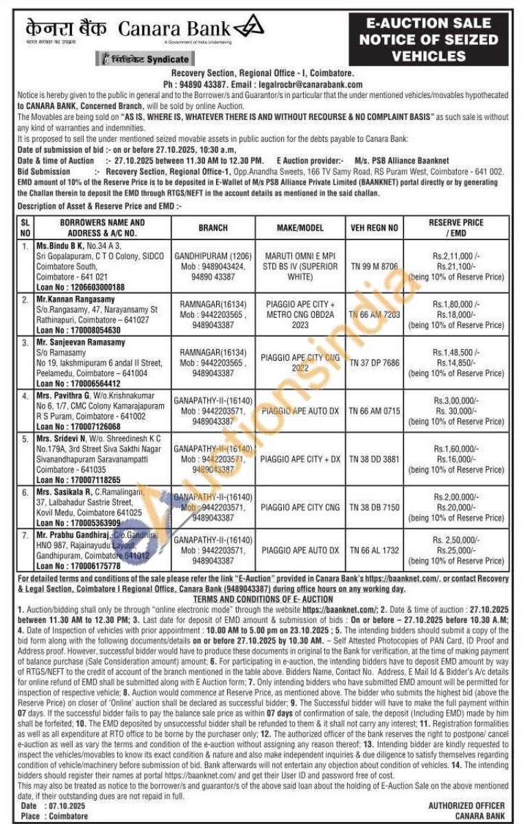 Contact BRANCH GANDHIPURAM (1206) Mob: 9489043424, 94890 43387