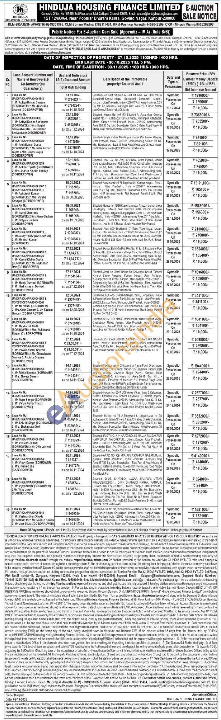 Authorised Officer Mr. Brajesh Awasthi (RLM)-Contact No : 9918301885 / Sonam Mishra (CLM)-Contact No : 9368111464