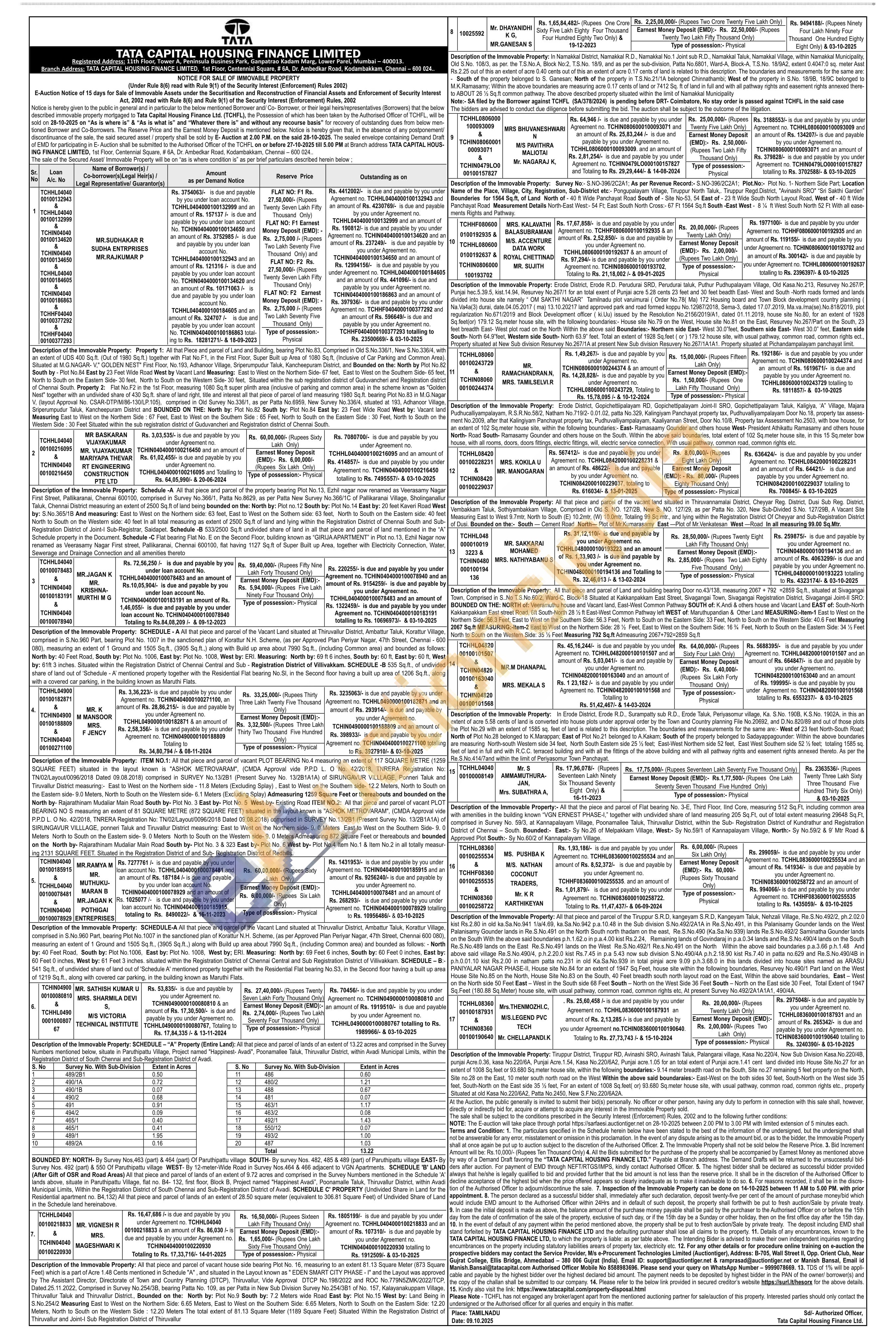 SCHEDULE -"A" Property (Entire Land): All that piece and parcel of lands of an extent of 13.22 acres and comprised in the Survey Numbers mentioned below, situate in Paruthipattu Village, Project named "Happinest- Avadi", Poonamallee Taluk, Thiruvallur District, within Avadi Municipal Limits, within the Registration District of South Chennai and Sub-Registration District of Avadi BOUNDED BY: NORTH- By Survey Nos, 463 (part) & 464 (part) Of Paruthipattu village SOUTH-By survey Nos. 482, 485 & 489 (part) of Paruthipattu village EAST- By Survey Nos. 492 (part) & 550 Of Paruthipattu village WEST-By 12-meter-Wide Road in Survey Nos.464 & 466 adjacent to VGN Apartments. SCHEDULE 'B' LAND (After Gift of OSR and Road Areas) All that piece and parcel of lands of an extent of 9.72 acres and comprised in the Survey Numbers mentioned in the Schedule 'A' lands above, situate in Paruthipattu Village, flat no. B4-132, first floor, Block B, Project named "Happinest Avadi", Poonamalle Taluk, Thiruvallur District, within Avadi Municipal Limits, Within the Registration District of South Chennai and Sub-Registration District of Avadi. SCHEDULE C' PROPERTY (Undivided Share in Land for the Residential apartment no. B4,132) All that piece and parcel of lands of an extent of 28.50 square meter (equivalent to 306.81 Square Feet) of Undivided Share of Land in the Schedule land hereinabove.