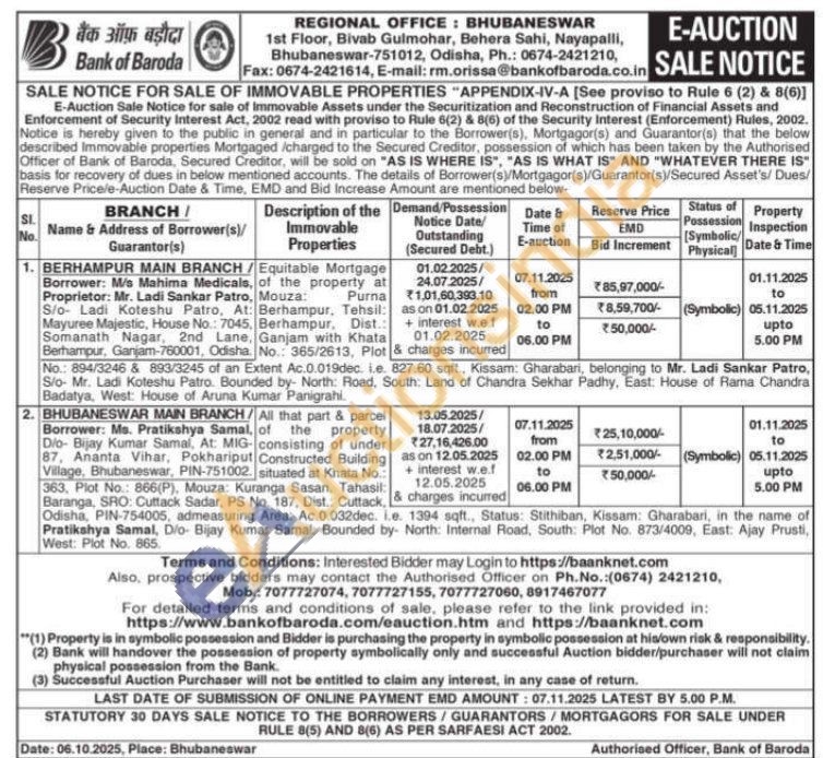 / Equitable Mortgage of the property at Mouza: Purna Berhampur, Tehsil: Berhampur. Dist. Ganjam with Khata No.: 365/2613, Plot No.: 894/3246 & 893/3245 of an Extent Ac.0.019dec. l.e. 827.60 sqft., Kissam: Gharabari, belonging to Mr. Ladi Sankar Patro, S/o- Mr. Ladi Koteshu Patro. Bounded by North: Road, South: Land of Chandra Sekhar Padhy, East: House of Rama Chandra Badatya, West: House of Aruna Kumar Panigrahi.