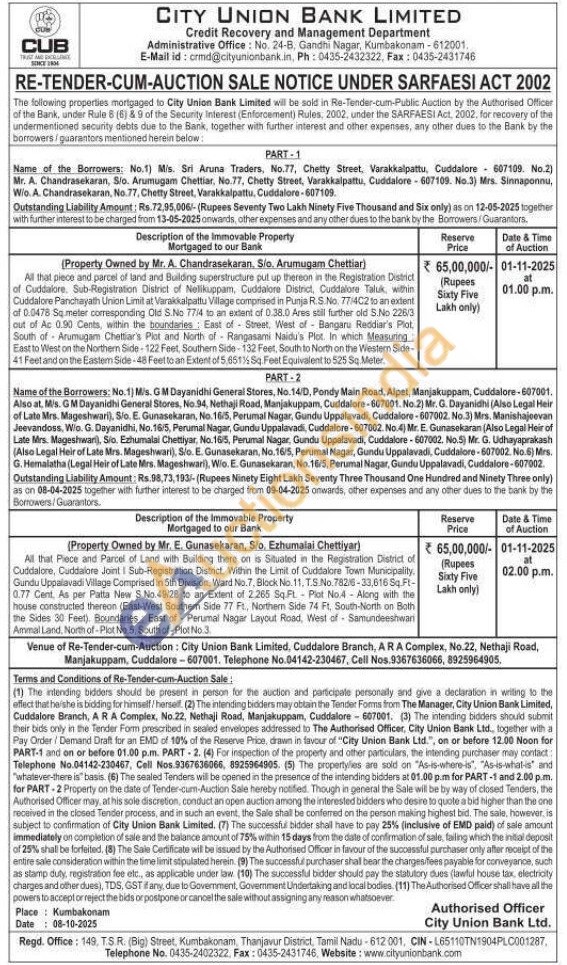 All that piece and parcel of land and Building superstructure put up thereon in the Registration District of Cuddalore. Sub-Registration District of Nelikuppam, Cuddalore District, Cuddalore Taluk, within Cuddalore Panchayath Union Limit at Varakkalpattu Village comprised in Punja R.S.No. 7714C2 to an extent of 0.0478 Sq meter corresponding Old S.No 77/4 to an extent of 0.38.0 Ares still further old 5.No 226/3 out of Ac 0.90 Cents, within the boundaries: East of Street, West of Bangaru Reddiar's Plot. South of Arumugam Chettiar's Plot and North of Rangasami Naidu's Plet In which Measuring East to West on the Northern Side-122 Feet, Southern Side-132 Feet, South to North on the Western Side-41 Feet and on the Eastern Side-48 Feet to an Extent of 5,651% Sq. Feet Equivalent to 525 Sq Meter.