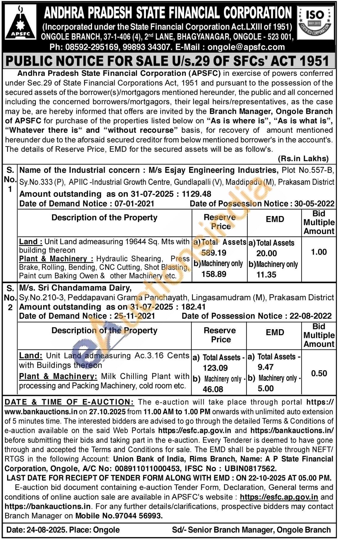 contact Branch Manager on Mobile No.97044 56993.