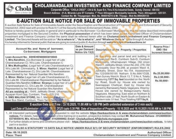 All that piece and parcel land and building in Periyakulam Re-D, Cumbum Sub-D, Cumbum Municipality, Uthamapuram Village, Old Union Ward-1, Jallikattu Street, Union No.242, 278, Old Municipality Door No 248, at present Ward -6. Jallikattu Street, Door No. 154, Assessment No. 122/006/00195 Natham S.No.884/1D2B, Town Survey Ward A. Block 13, T. S No.4, Totally measuring 1377 Sq. feet bounded on the: North by: Road, South by: House site owned by Seeniappan Chettiyar. East by: House site owned by Ramasamy Naidu Vagaiyara, West by: House site owned by Balagurusamy Naidu Vagaiyara. Measuring. East west on Northem & Southern side: 27 feet, North South on Eastern & Western side: 51 feet. Thus Totalling 1377 Sq.ft.
